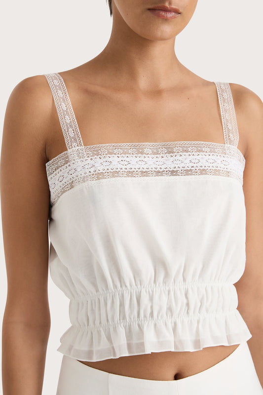 BRODERIE SHIRRED DECOLETTE BLOUSE - WHITE