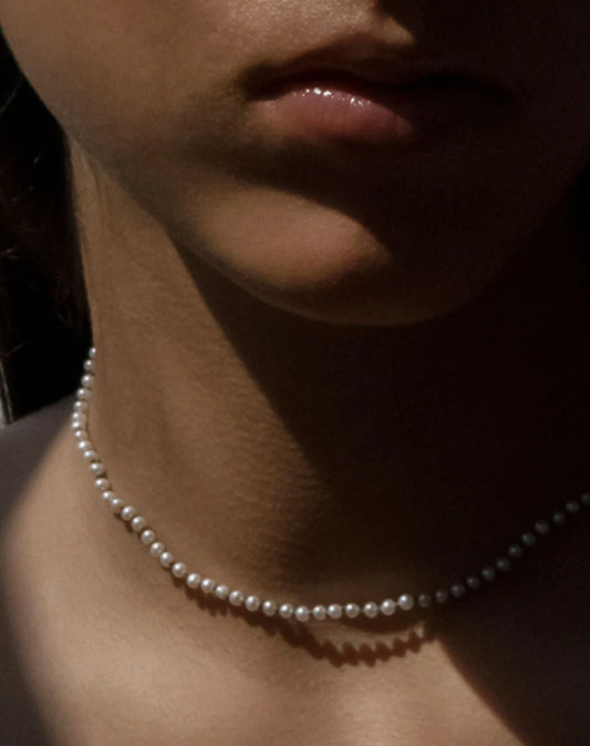 KNOTTED MICRO PEARL NECKLACE - SILVER RED