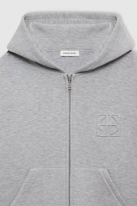 BOND ZIP UP HOODIE FRAMED MONOGRAM - HEATHER GREY