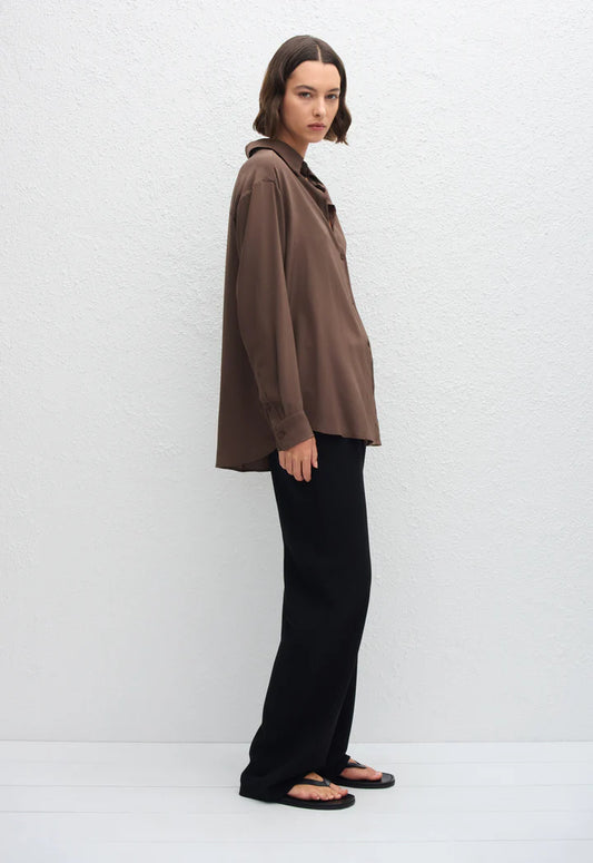LONG SLEEVE SILK SHIRT - TRUFFLE