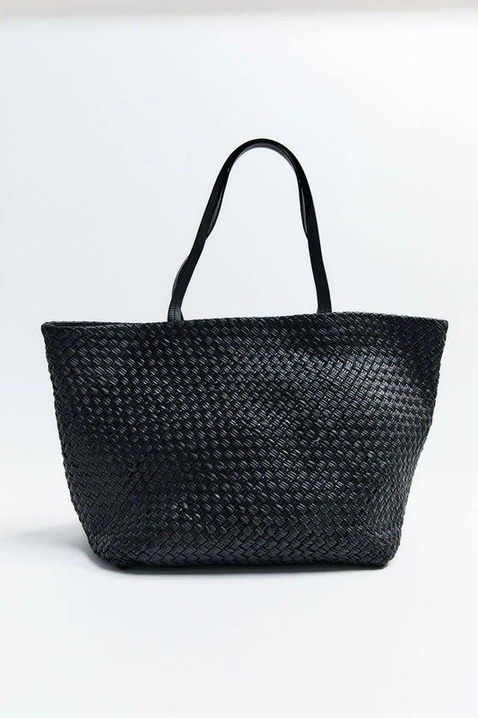 LARGE WOVEN TRAPEZE BAG - BLACK