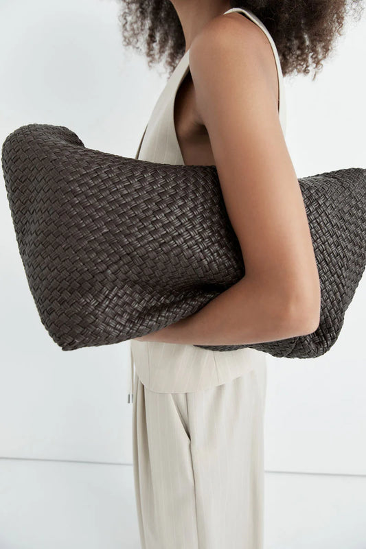LARGE WOVEN TRAPEZE BAG - CHOCOLATE
