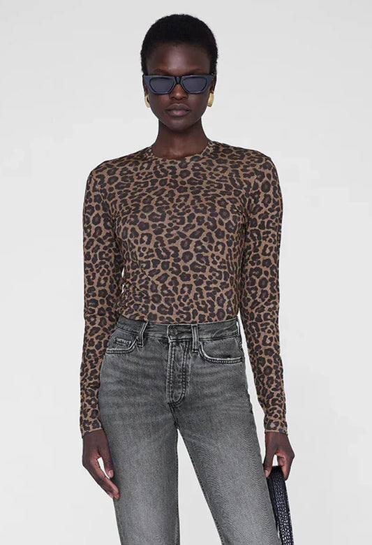 SYLVIE LONG SLEEVE TEE - BLACK AND BROWN LEOPARD