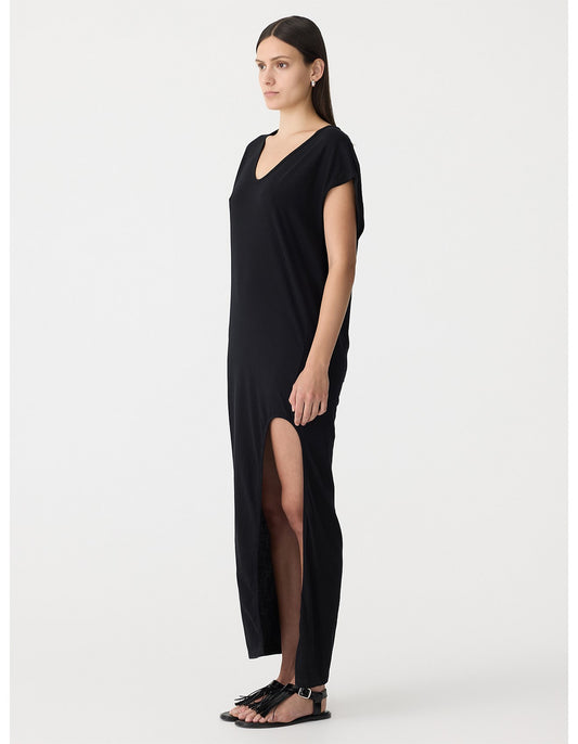 V NECK TANK SIDE SPLIT DRESS - BLACK