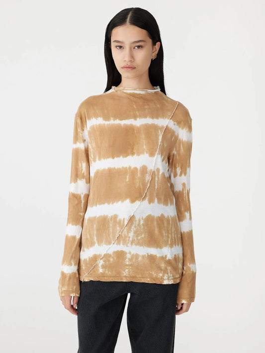 RIPPLE DYE PANELED L/S TSHIRT - DARK TAN/WHITE