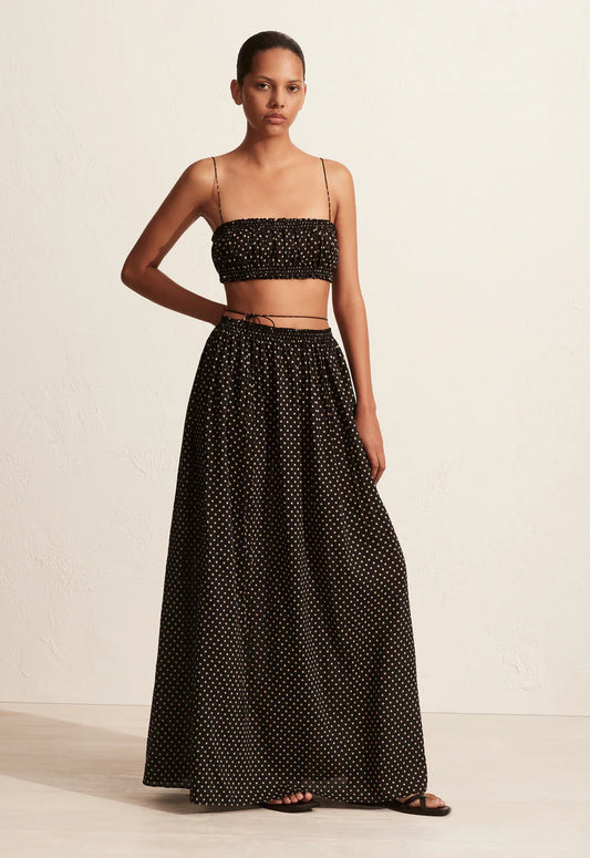 SHIRRED CROPPED BLOUSE - POLKA DOT