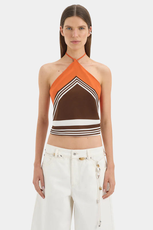 RIOJA HALTER SCARF TOP - PACHA MINERAL STRIPE