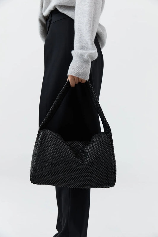 LARGE WOVEN TRAPEZE BAG - BLACK