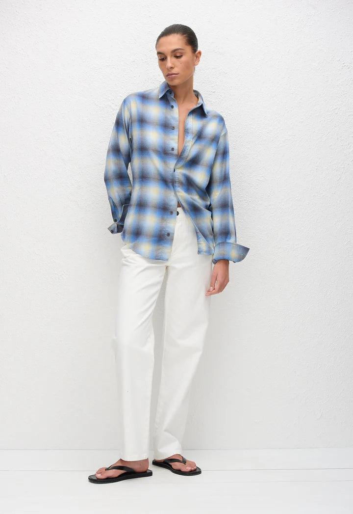 Introducing our Flannel Shirt, made from an ultra-soft, brushed organic cotton. The relaxed silhouette can be layered with a Baby Tee and our Relaxed Jeans, or styled over your favourite swimwear after a late summer swim.