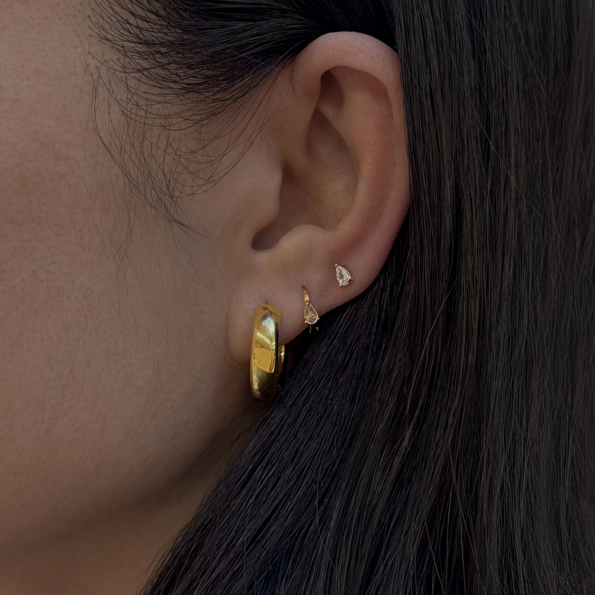 Meet the little sister to our best‑selling Masha Huggies, same pear‑cut sparkle, now in a flatback you’ll never want to take out. Designed for all‑day wear (and all‑night sleep), it’s the earring that earns its spot in your everyday rotation
