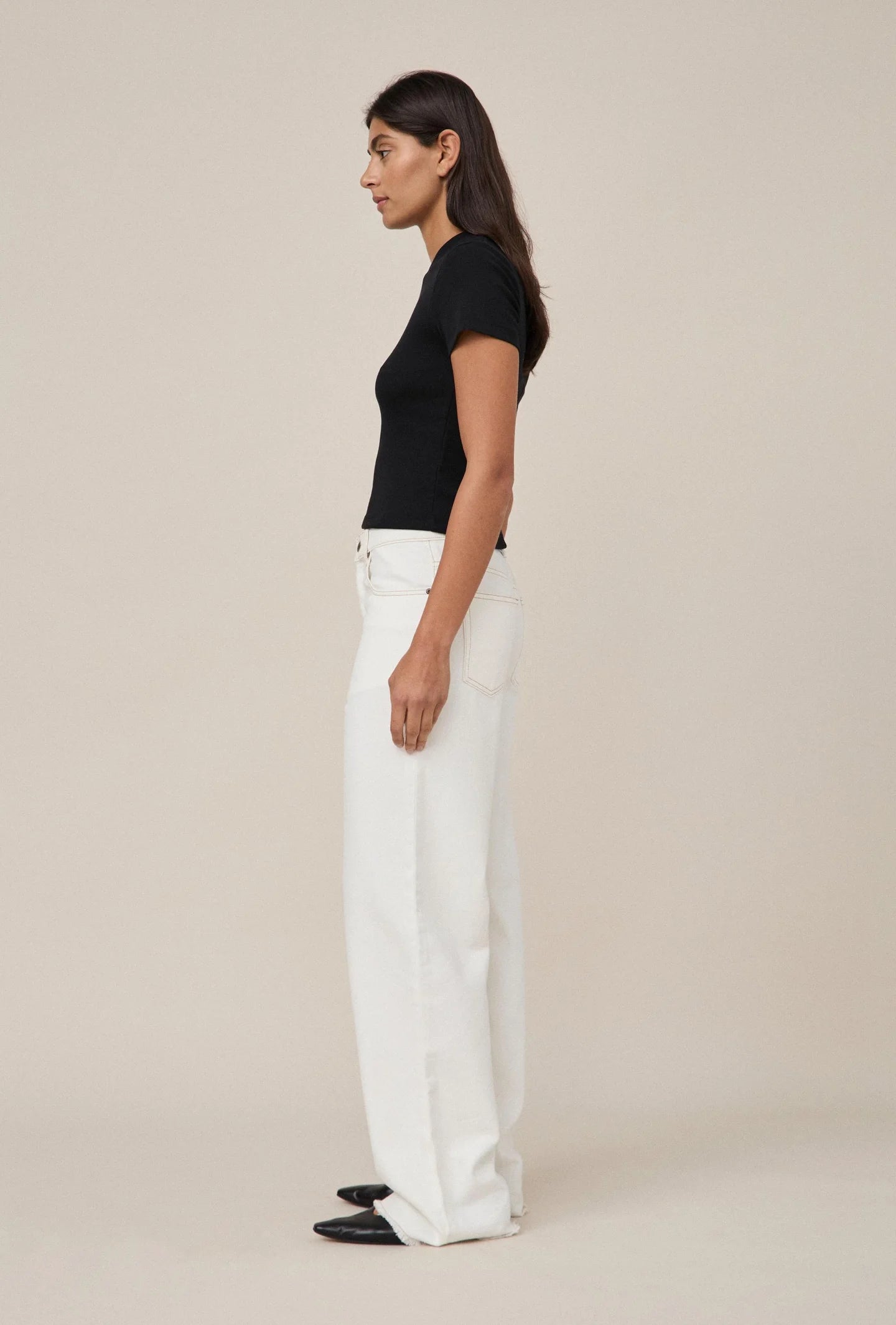 Maggie Marilyn's staple 01 t-shirt is now available in a shorter, more form-fitting style. Crafted in a heavyweight plush organic cotton, with a straight short sleeve and stitch detailing down the centre back. No need to tuck in, the perfect Tee for all Denim! The Mini T-Shirt is a snug fit, therefore we recommend sizing up.