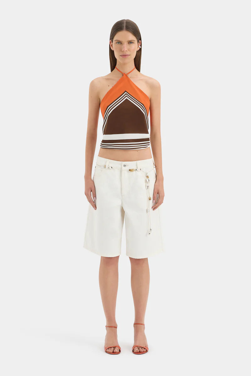 The Destino Scarf is your silk essential crafted from our signature silk crepe in the SIR. exclusive Pacha Stripe print. Featuring removable ties for multi-way styling, it is designed to effortlessly transition from an accessory to a summer cover up.