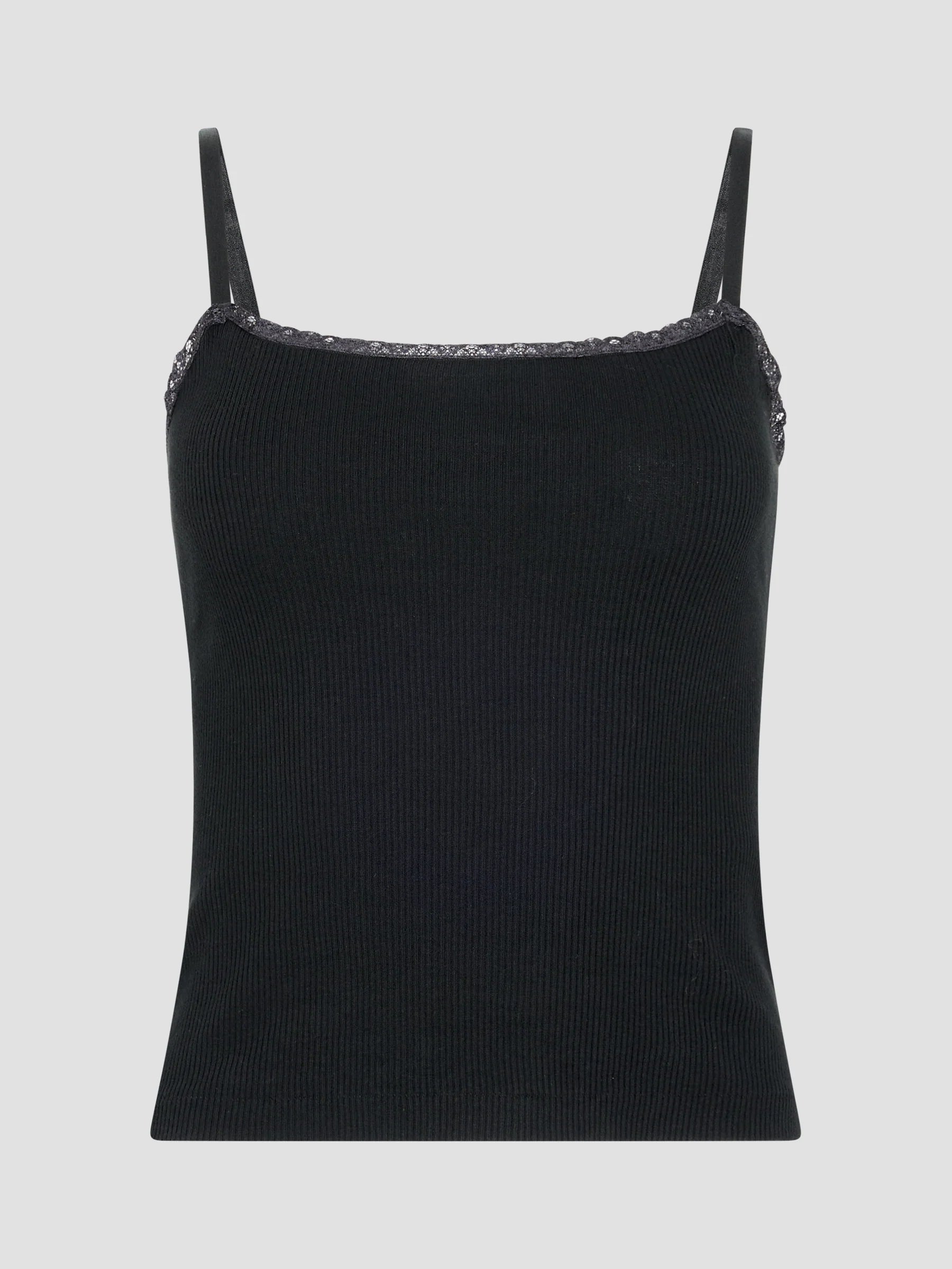 Crafted in a new signature jersey fabrication, the Slim Rib Lace Tank is designed for a slim fit in a super soft rib. A refined wardrobe essential, the style features babylocked hems, a scooped neckline, and delicate lace trim detailing.