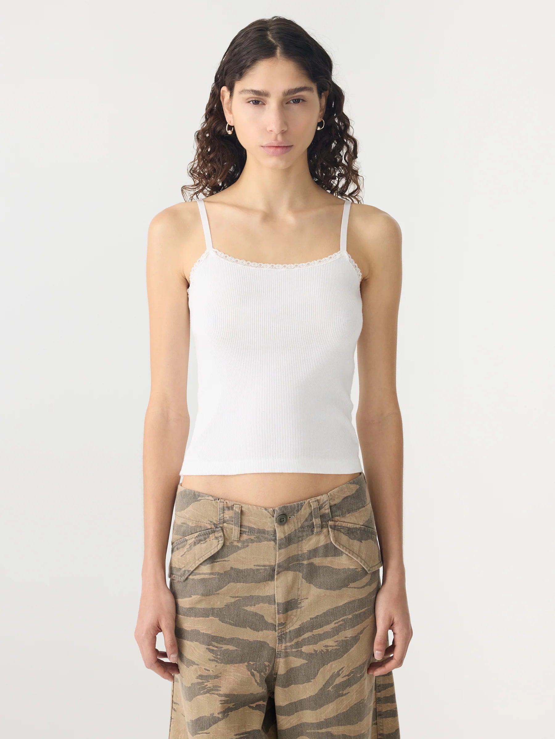 LACE STRAP SOFT RIB TANK - WHITE