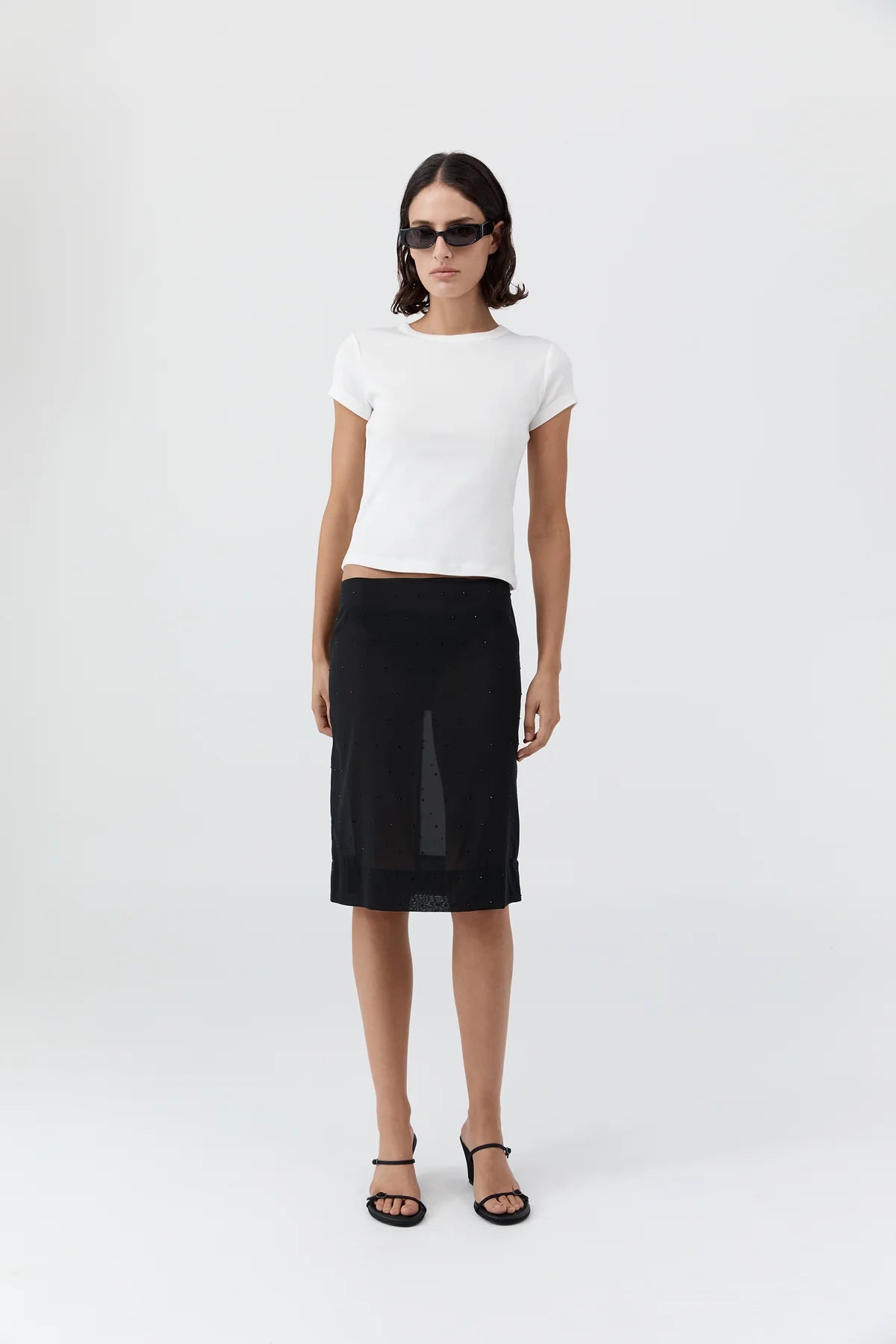 - Crew neck, cap sleeve, waist length