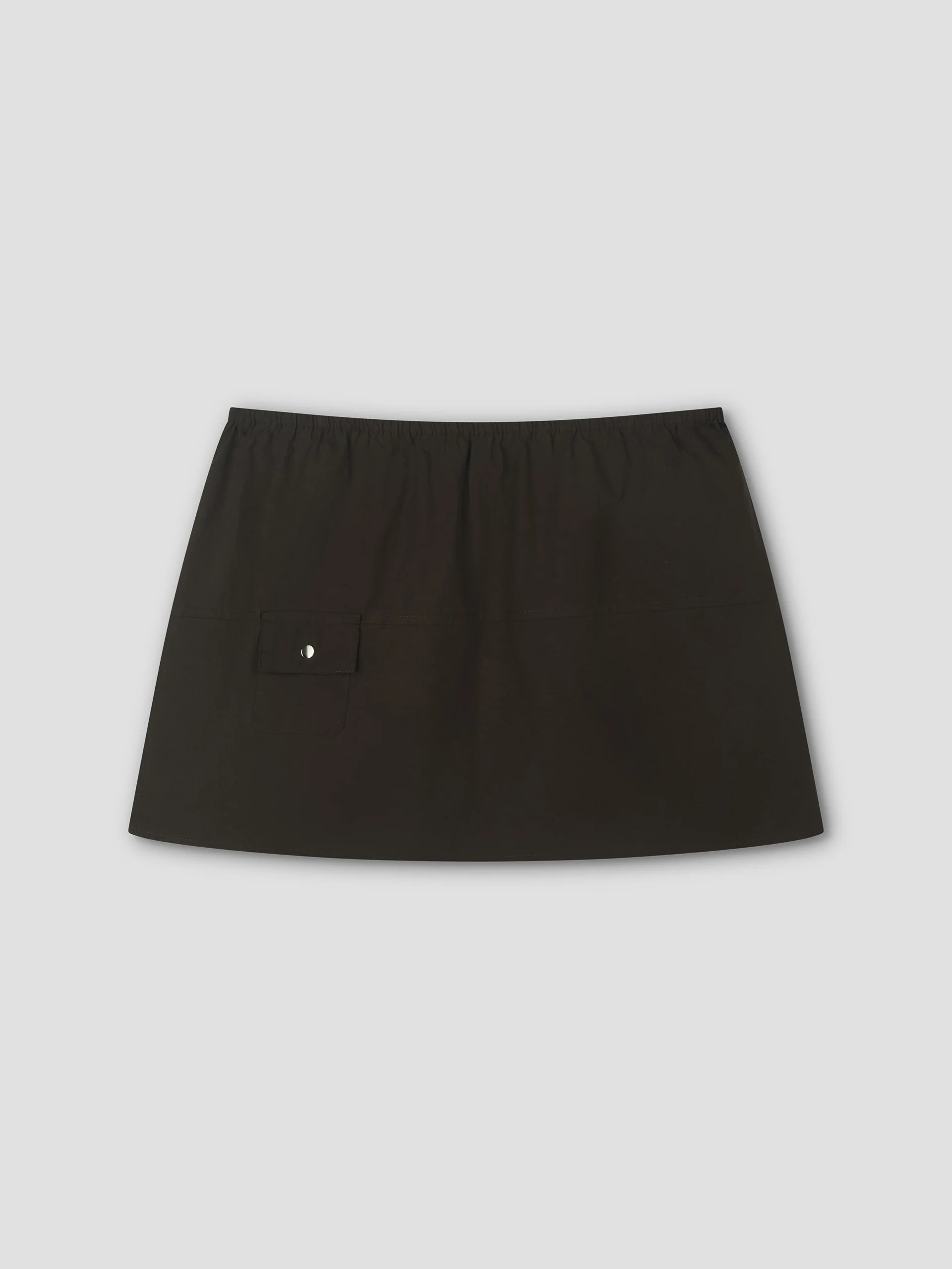 a relaxed mini-length skirt with an elasticated waistband, featuring a side pocket. designed with an easy straight silhouette and clean hem finish