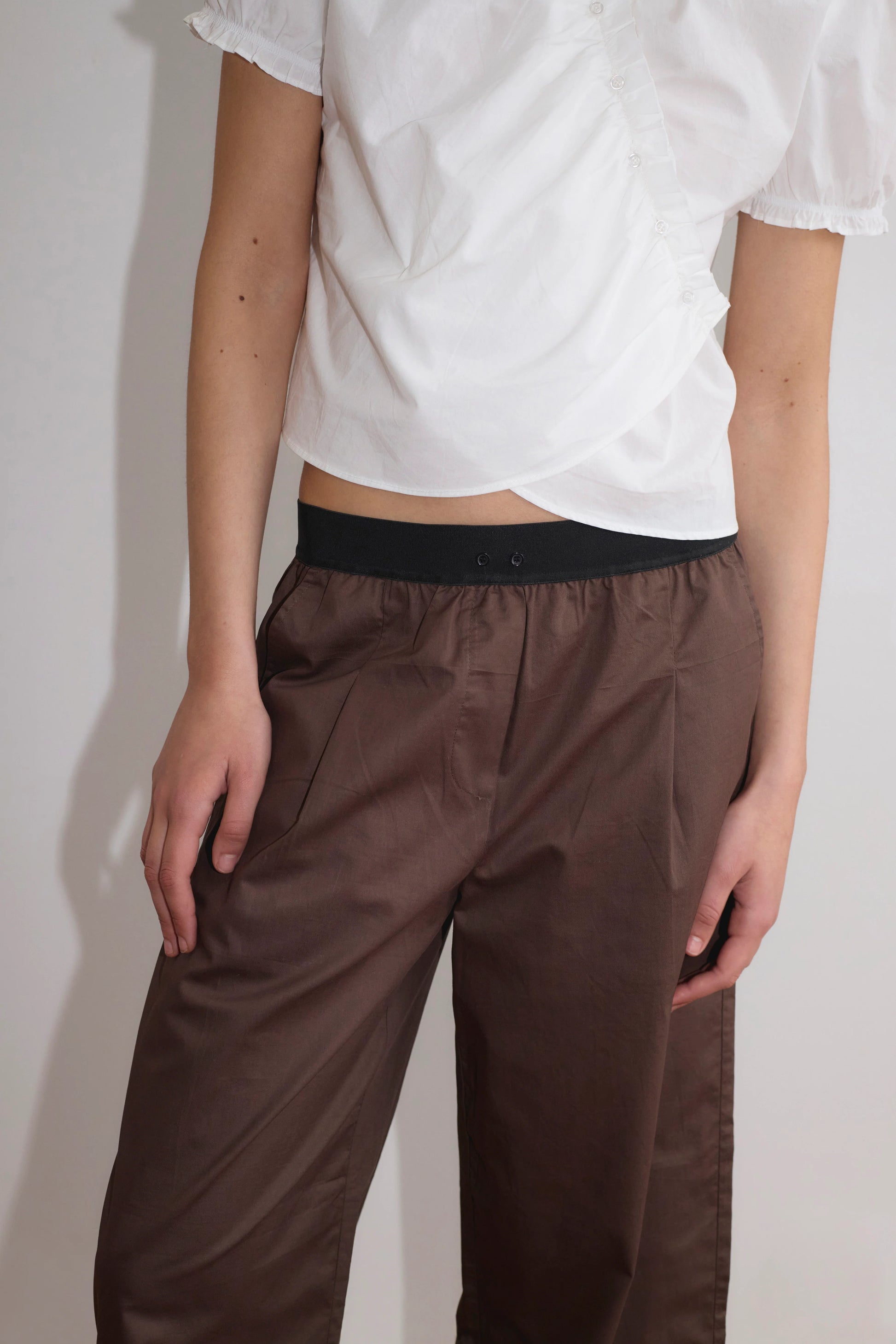 the contrast waist pant by Deiji Studios in brown