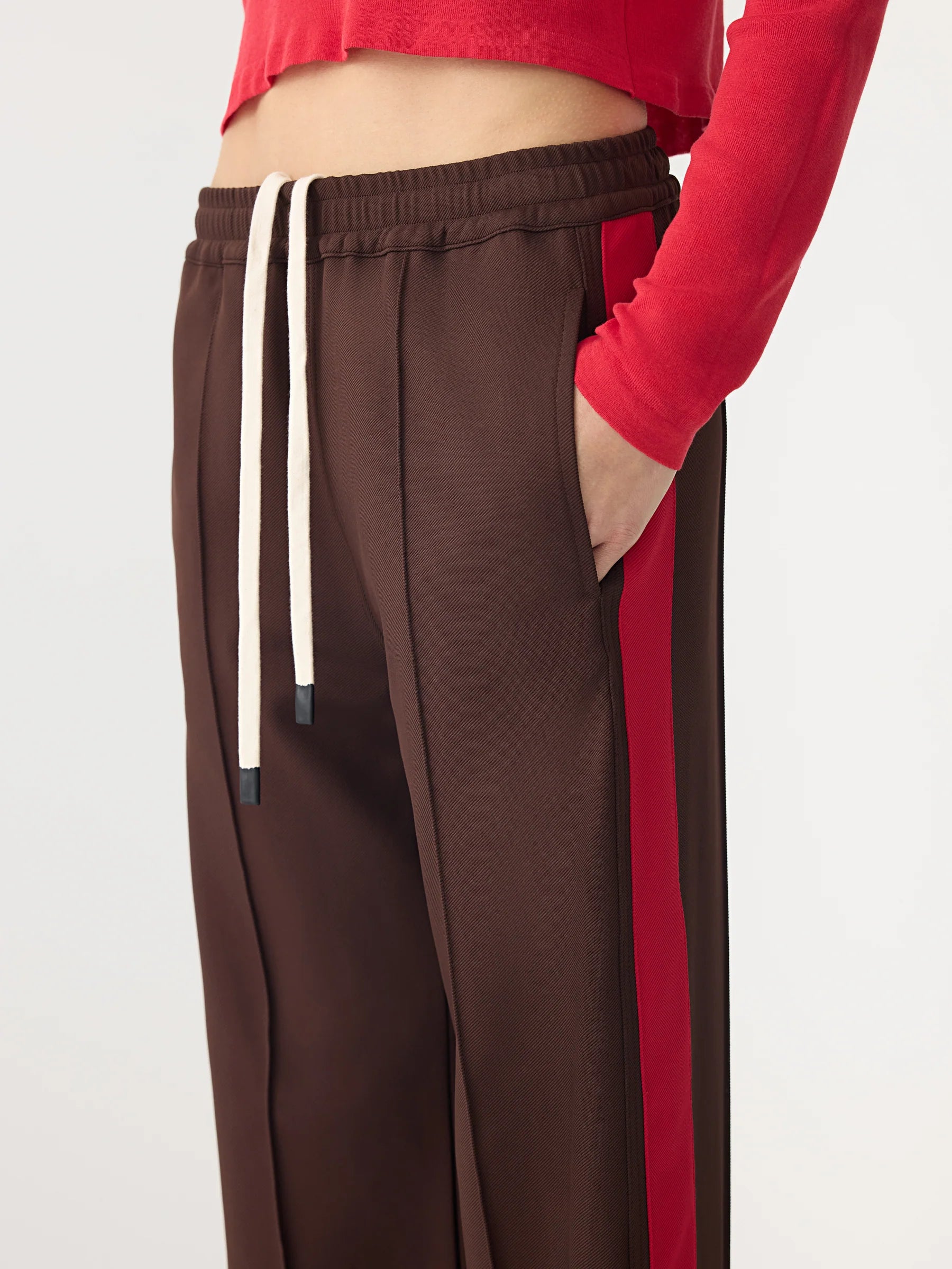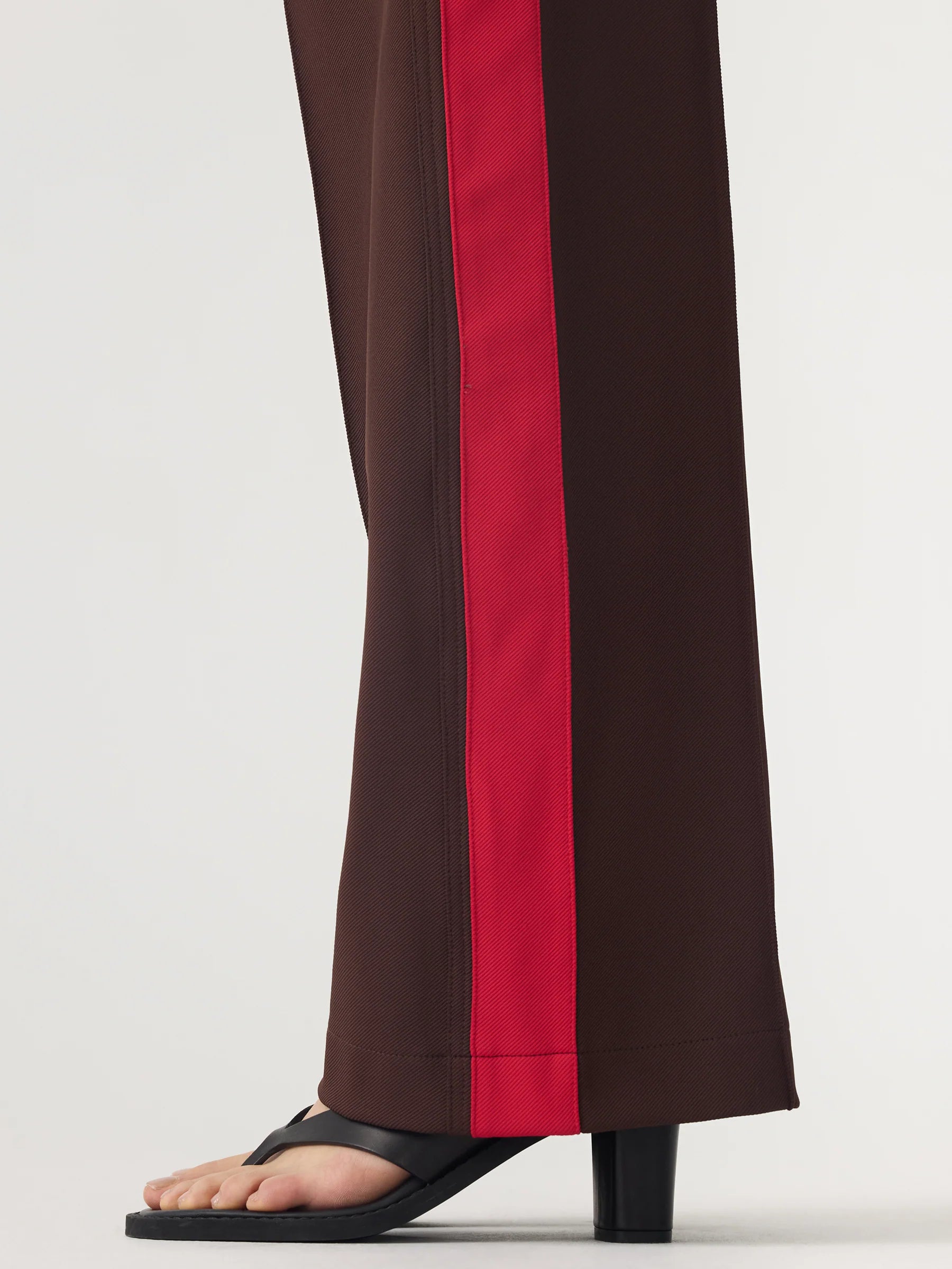 TWILL STRIPE DETAIL PANT - CAROB AND RED