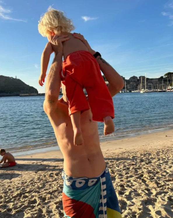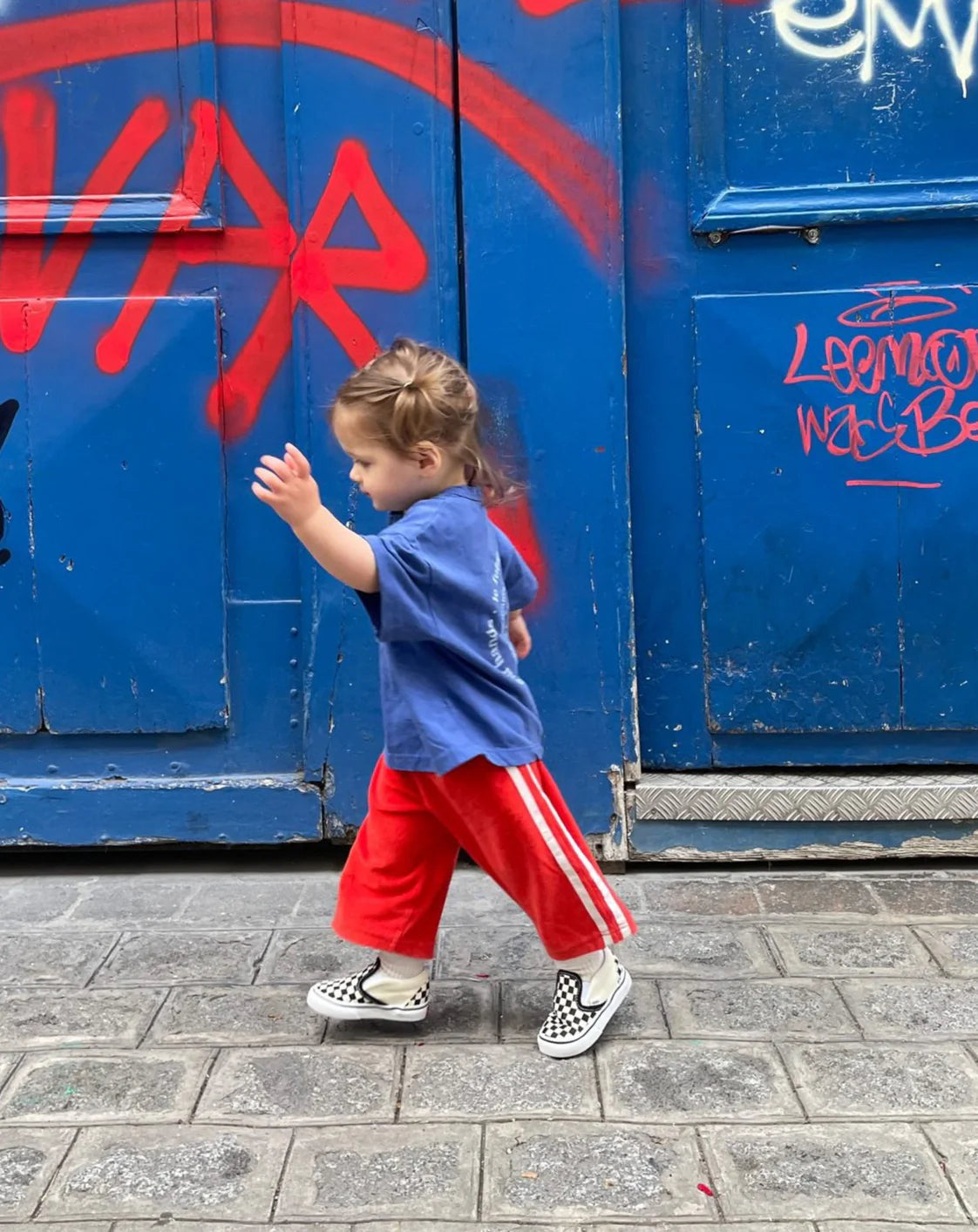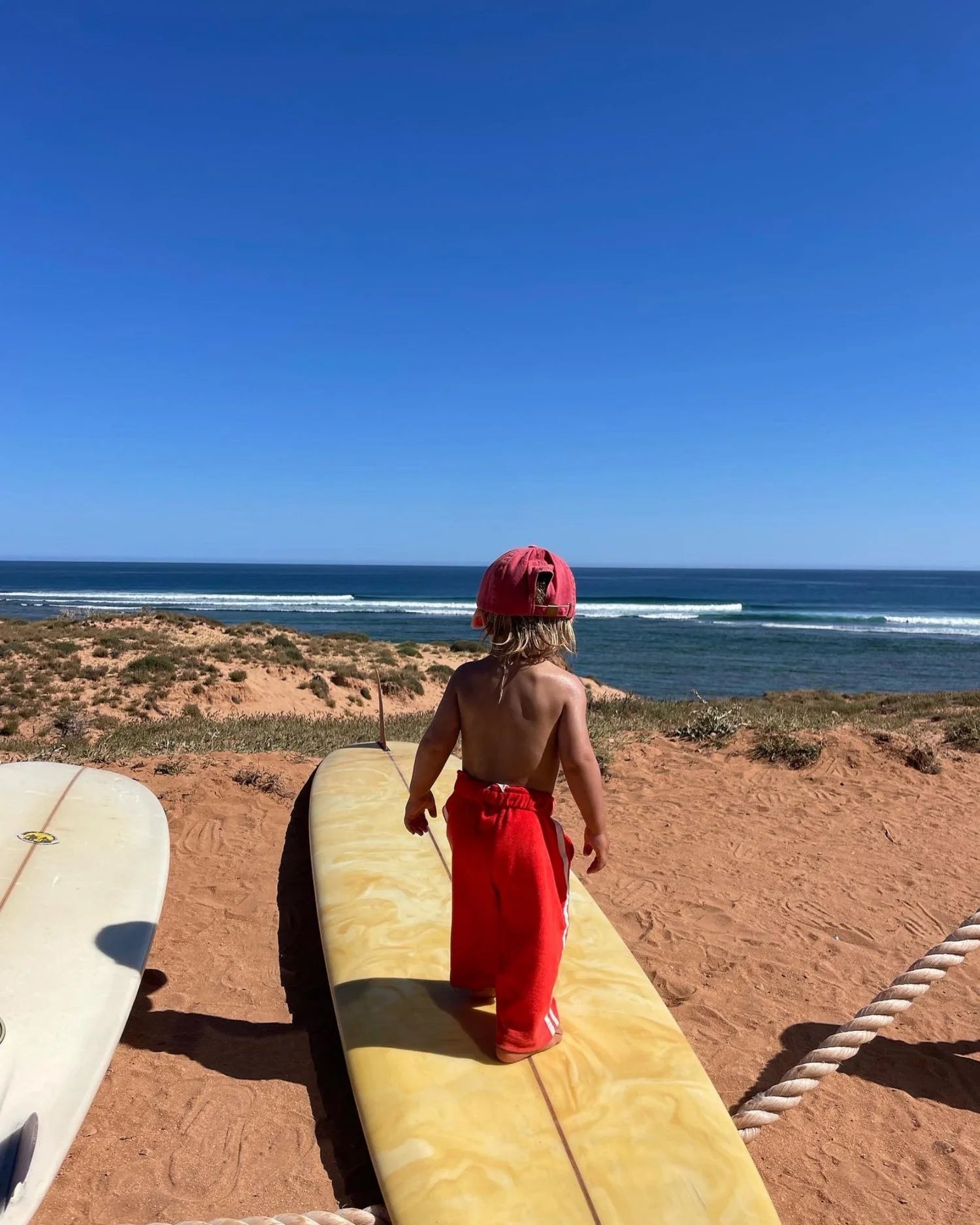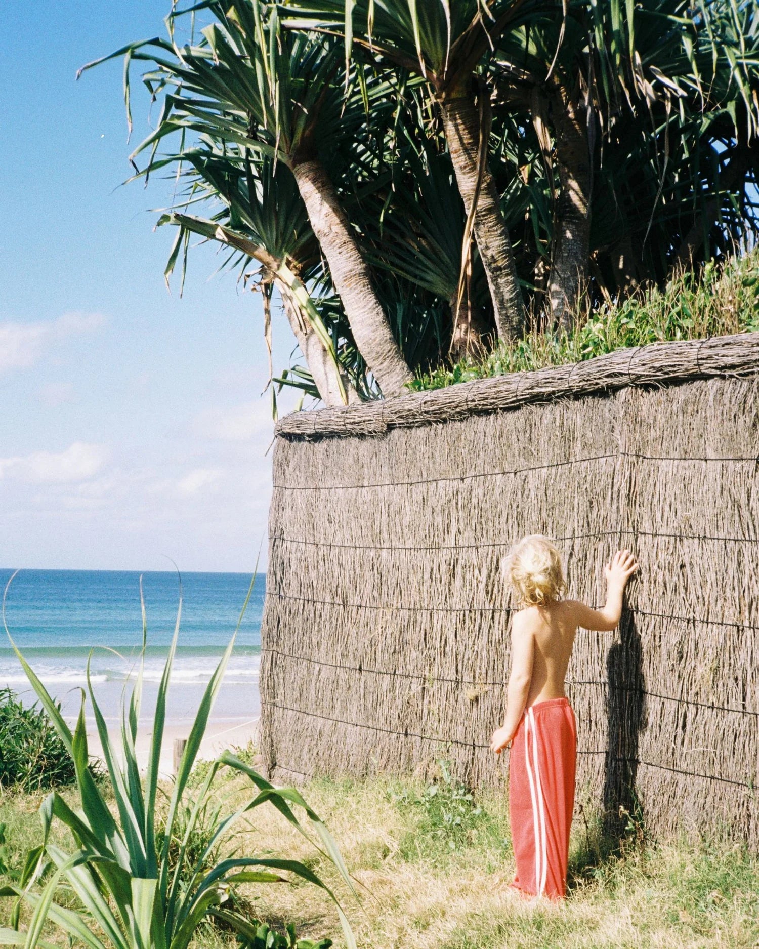 a super soft, loose fitting pant with an elastic waist, side pockets and our feature twin stripes down the side