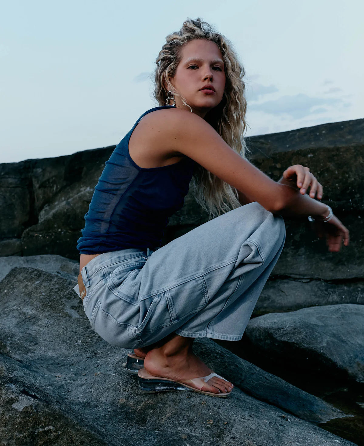 Our debut Vegetable Dye Utility Jean comes in a mid-rise, slouchy fit with a patch-pocket detail and button fly. A comfortable 13oz weighted denim style, design details feature a paper patch at the back waistband and Nagnata branded rivets and buttons.